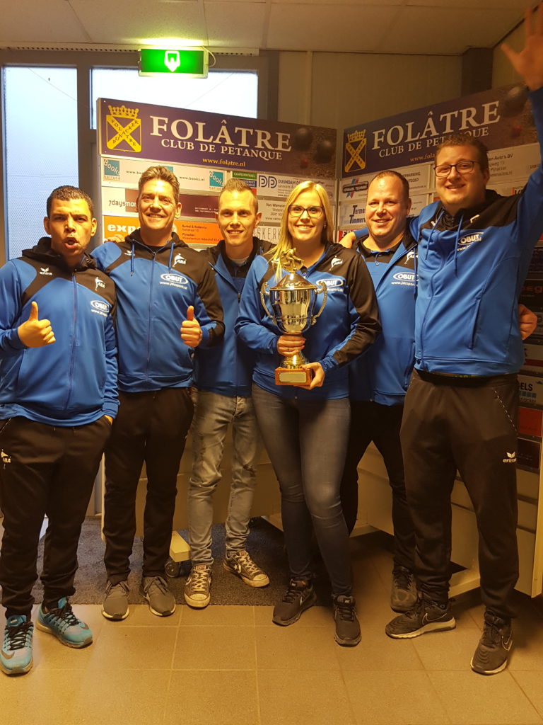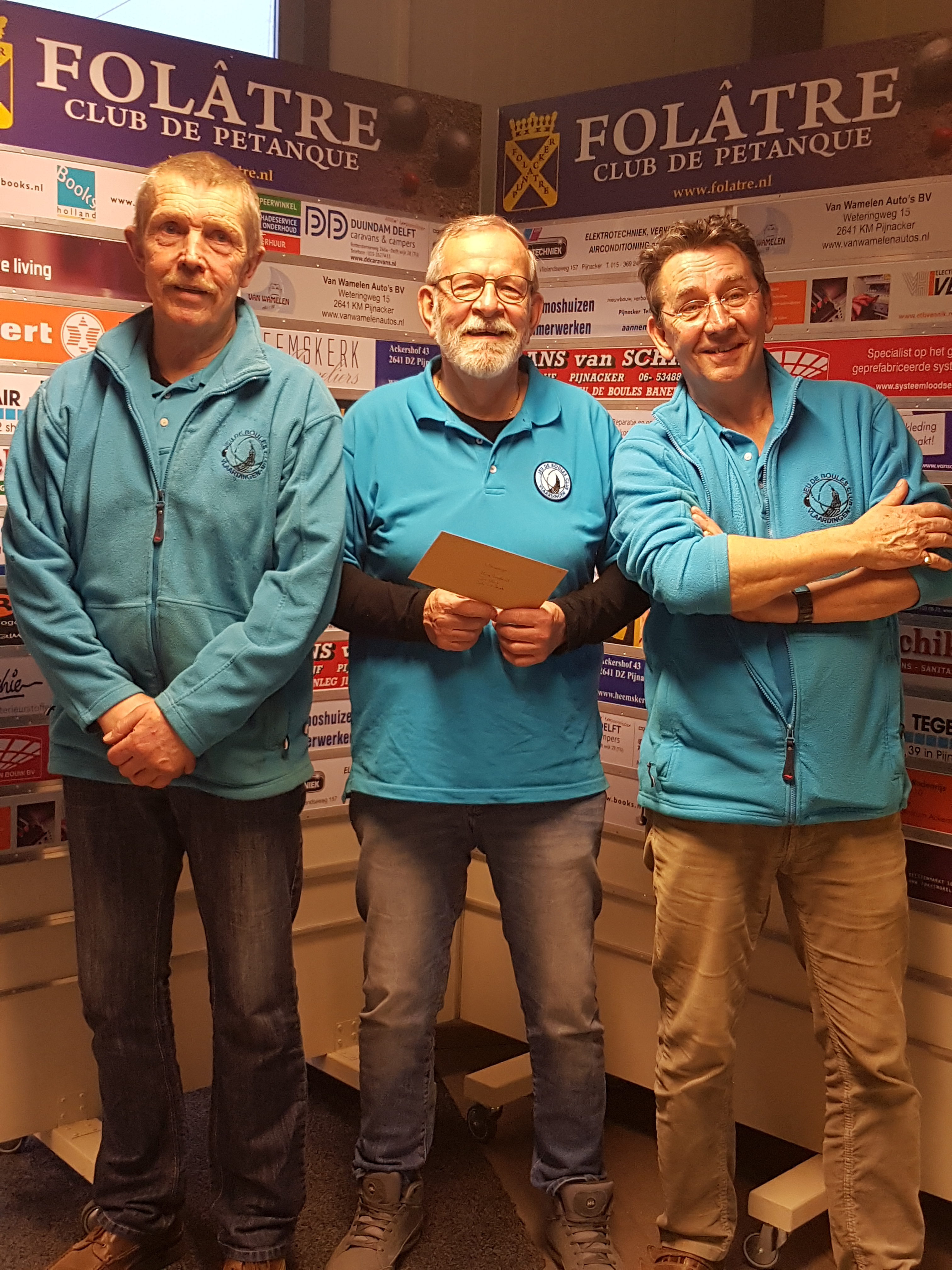 De winnaars van ons interne clubkampioenschap voor tripletten mochten de eer van Folâtre hoog houden deze dag. Helaas kwamen zij niet verder als vier gewonnen partijen. De drie winstpartijen van Hilly Klopper, Jan de Groodt en Gerard ten Velden (winnaars bij de niet-wedstrijdsplers) waren erg netjes maar Willem Zuidema, Ruud Adam en Sven Hakkenes kwamen niet verder als 1 gewonnen wedstrijd. De individuele eindstand was als volgt: