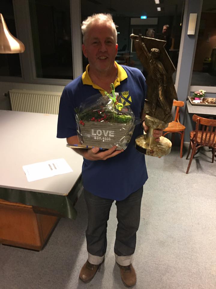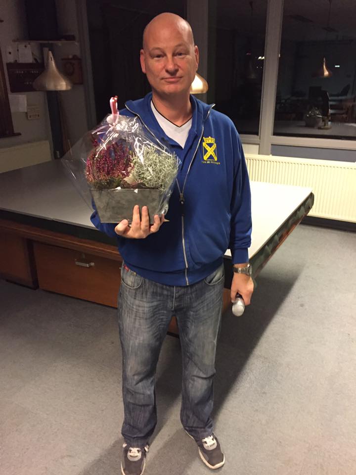 Na een paar zeer spannende partijen in de kwartfinale bleven er nog vier kanshebbers over. Leen, Gertjan, Hans-Willem en Arie. In de halve finale won Hans-Willem van Arie en Leen won in een thriller met 13-12 van Gertjan. De finale was bekend en om half 5 startten Leen en Hans-Willem aan hun zevende partij. Echt heel spannend werd die finale niet. Door het zeer gedegen en bijna foutloze spel van Leen kreeg Hans-Willem niet echt zijn draai. Met 13-6 ging de overwinning dan ook verdiend naar Leen Hoogerdijk. Na zijn eerdere titels bij het doubletten- en triplettenkampioenschap heeft hij nu zijn trilogie te pakken. Gefeliciteerd!
