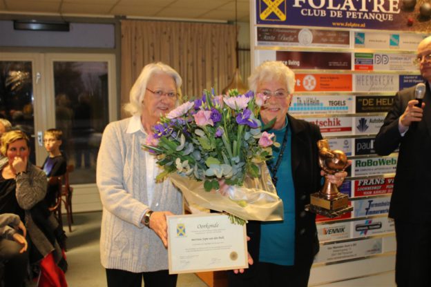 Tot slot werd onder luid applaus de vrijwilliger van het jaar bekend gemaakt. Door haar jarenlange werk voor de club en met name haar betrokkenheid in de commissie “Lief en Leed” werd Jopie van den Bulk de terechte eigenares van deze bokaal.
