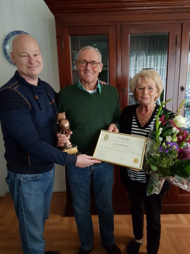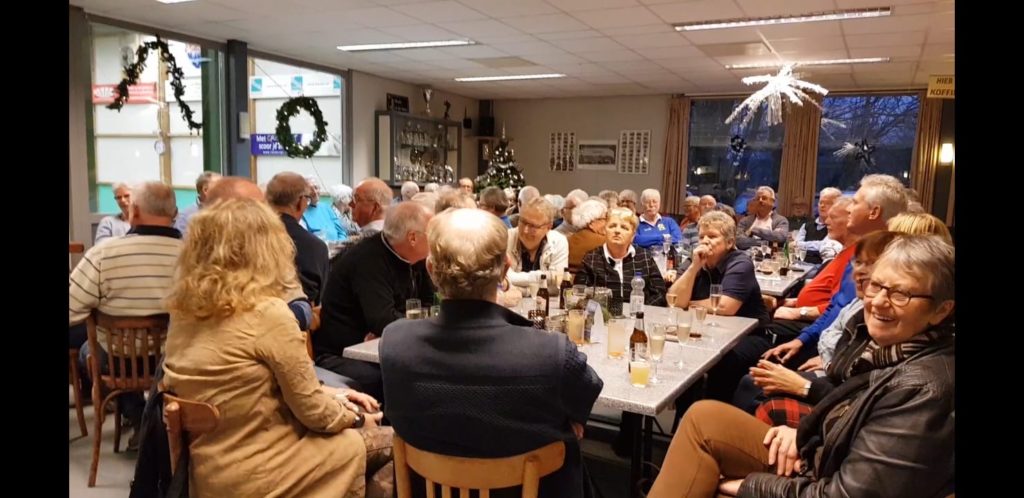 Daarna volgde een gezellige receptie waar de voorzitter zijn jaarlijkse toespraak hield en met alle aanwezigen toostte op een mooi 2020. Tot slot werd onder luid applaus Ben Kaptein benoemd tot Vrijwilliger van het Jaar 2019. Omdat hijzelf niet aanwezig was heeft de voorzitter hem inmiddels thuis verrast. De prijs komt hem toe omdat hij al vele jaren lang elke maand de ramen van de kantine staat te boenen.