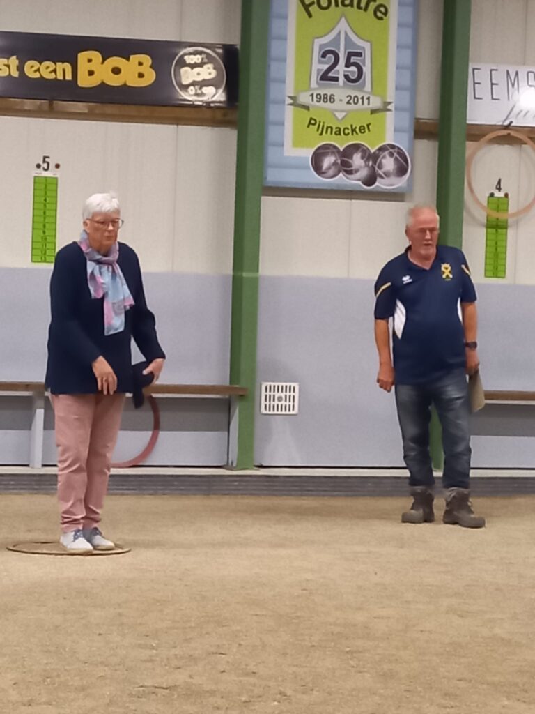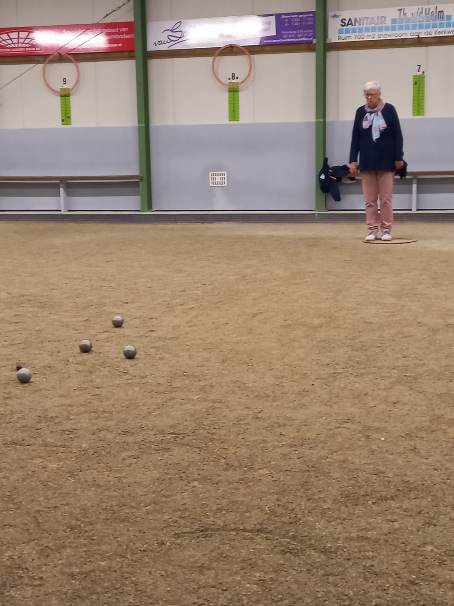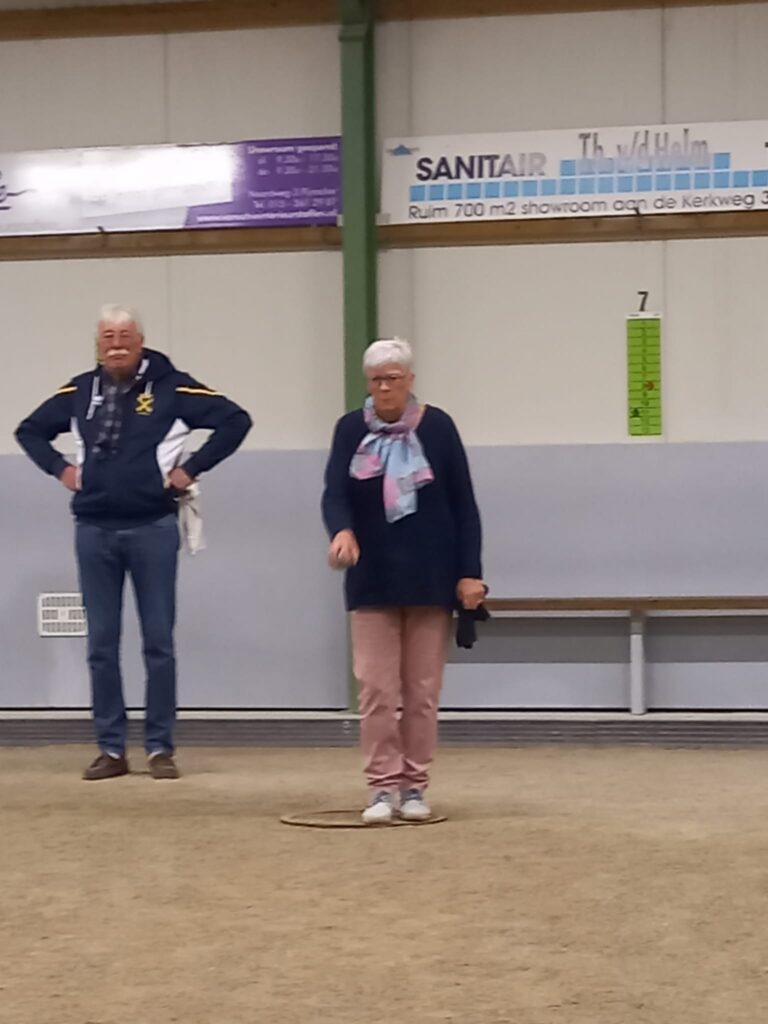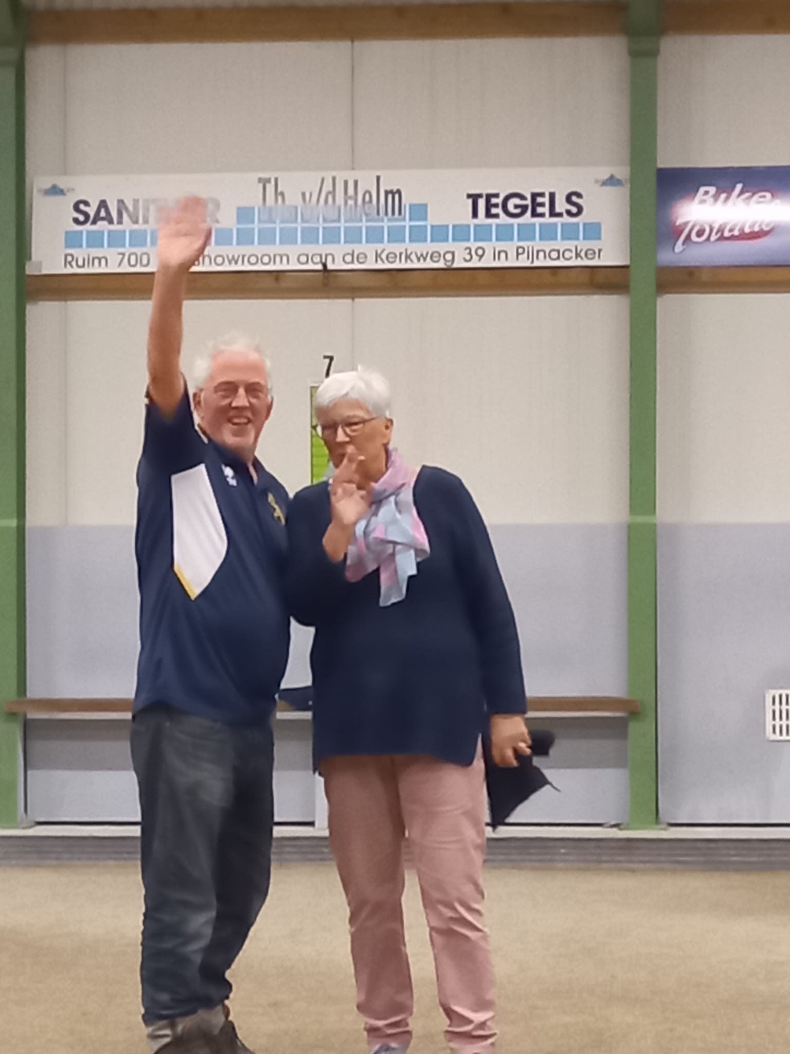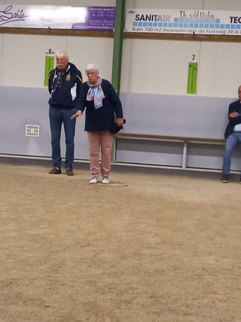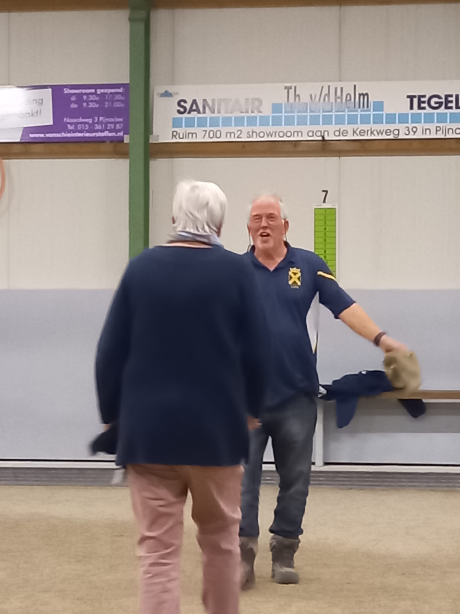 In de daarop volgende mène 3 voor Marja, 12-9! Daarna 3 voor Leen, 12-12!