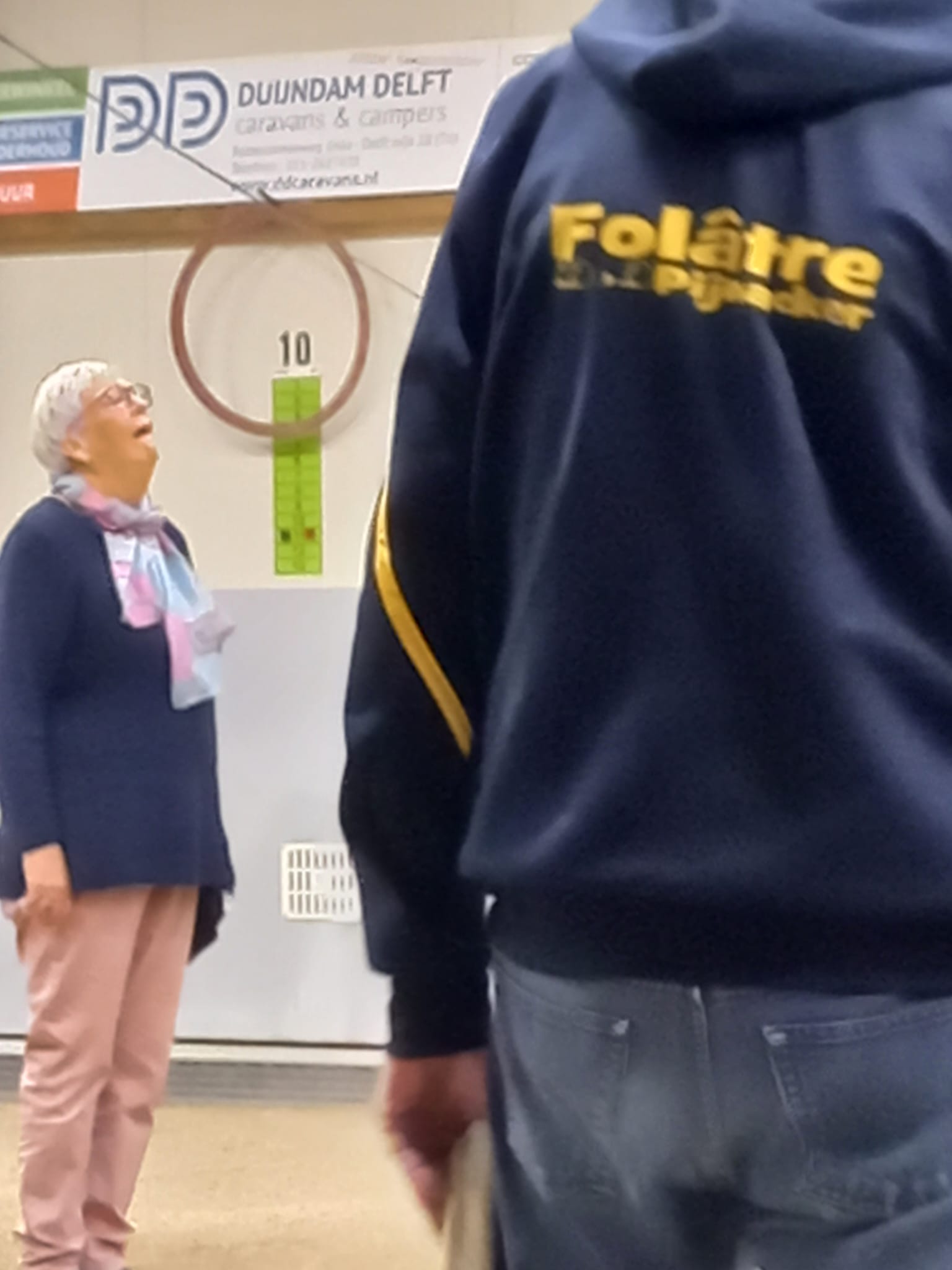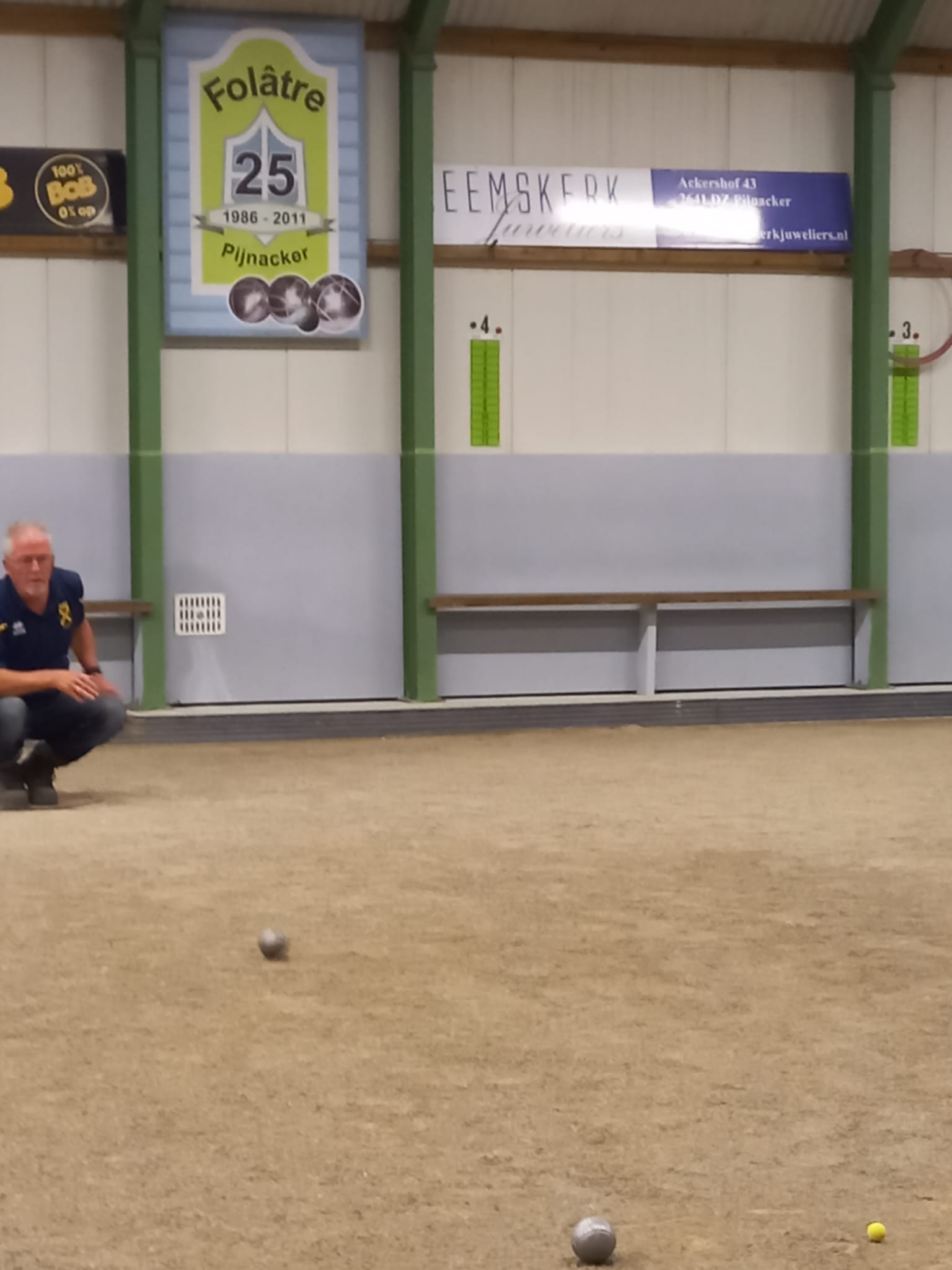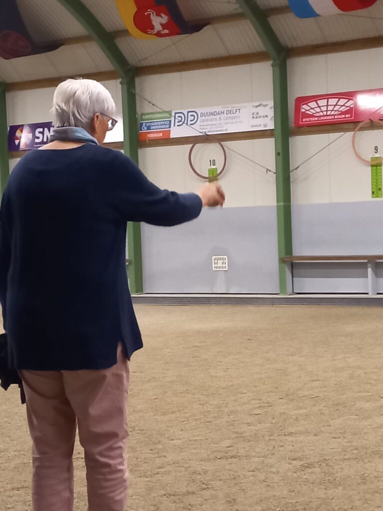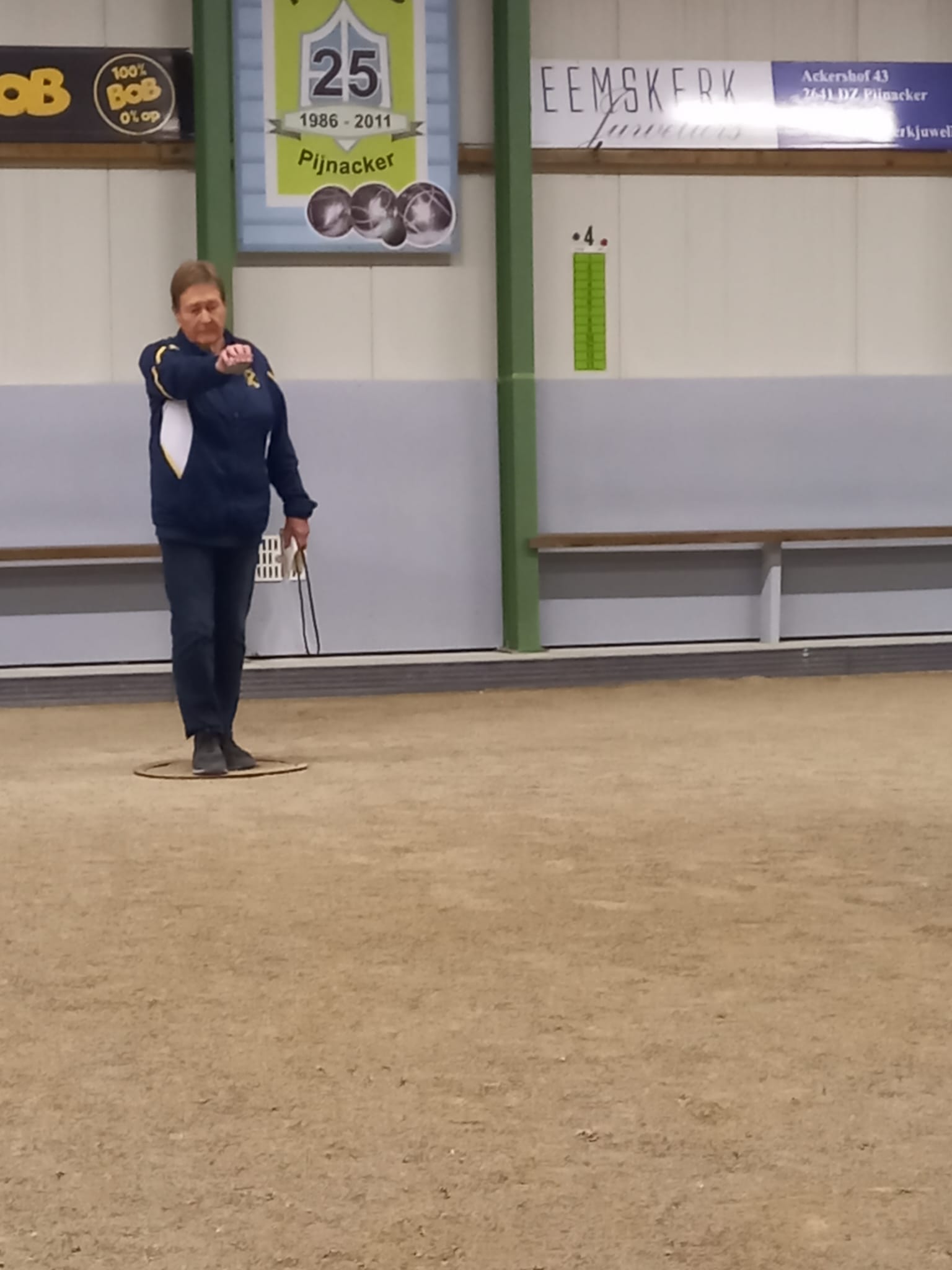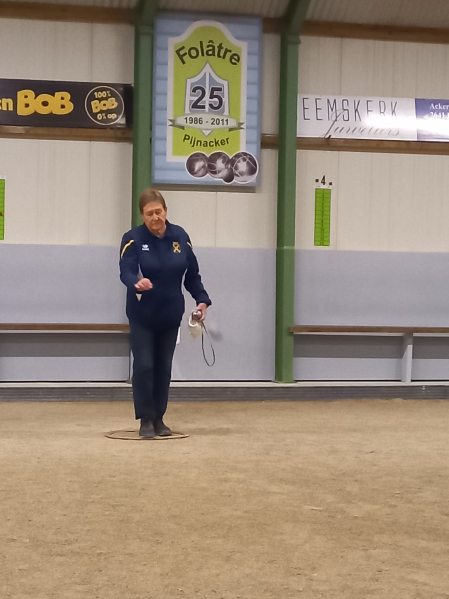 In de daarop volgende mène 3 voor Marja, 12-9! Daarna 3 voor Leen, 12-12!