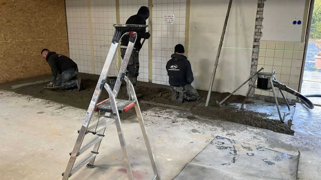 Momenteel werkt Meerbouw aan het egaliseren van de vloer waarna gestart kan gaan worden aan de nieuwe wanden.