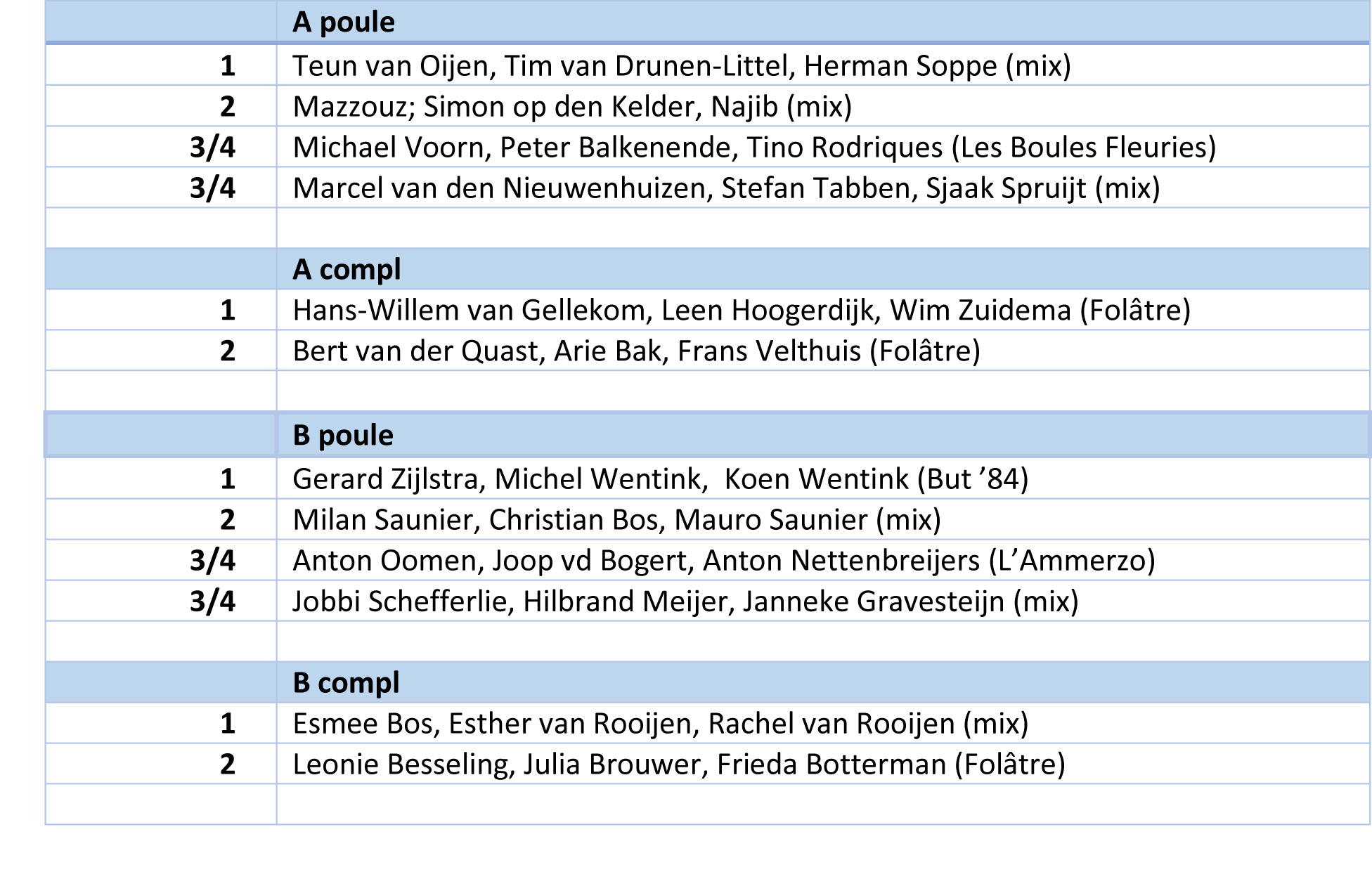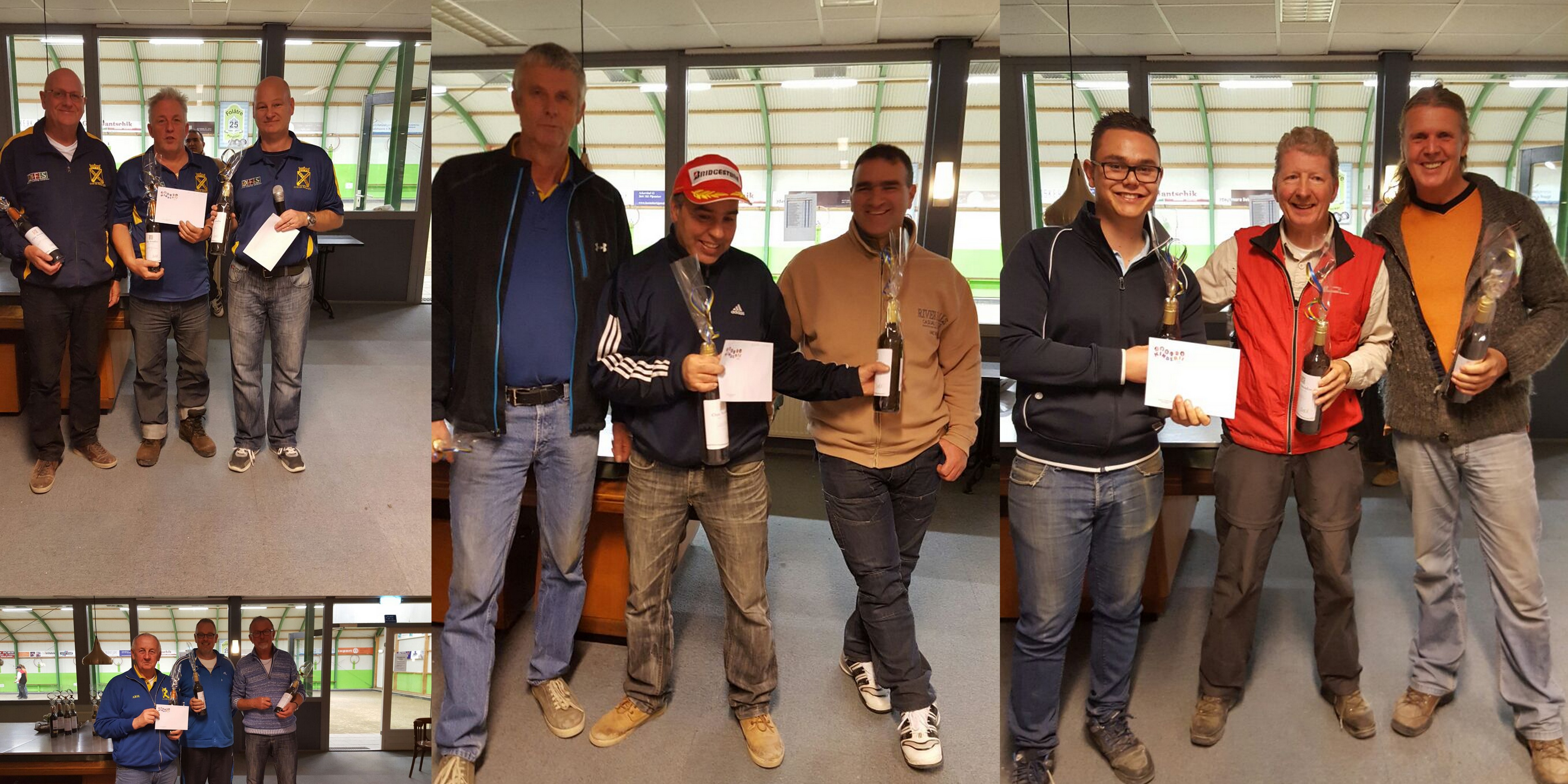 Uitslag Bacchustoernooi Linksboven de winnaars Compl A, daaronder de nummer 2. Uiterst rechts de winnaars Hoofdtoernooi en in het midden de nummer 2.